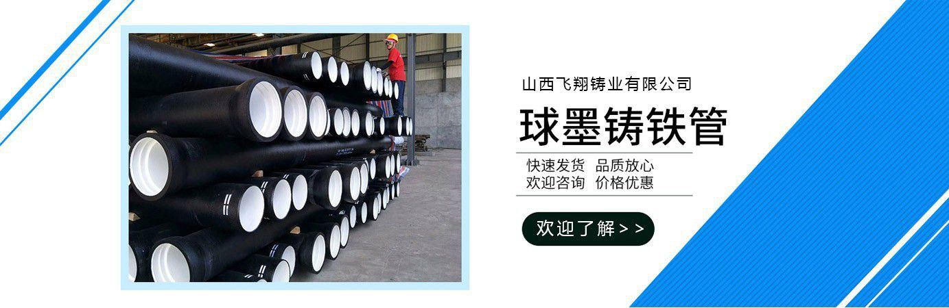 山西飛翔鑄業(yè)有限公司是一家以新興技術致力于研制開發(fā)、生產、銷售、施工安裝各種球墨管廠家,球墨鑄鐵管價格,國標球墨管,k9球墨鑄鐵管,國標球墨鑄鐵管,離心球墨鑄鐵管等系列鑄鐵產品。公司擁有完善的銷售、售后服務體系及一支由鑄造專家、工程師組成的精通產品設備和生產鑄造的技術力量隊伍。隨著企業(yè)的發(fā)展,我們積累了豐富的鑄造經驗與科技水平。使得產品具有高強度、高韌性、耐腐蝕性強等性能。同時,我們獲得質量管理體系認證、產品質量認證、職業(yè)健康體系認證、環(huán)境管理體系認證。產品暢銷各地并打入韓國、新加坡等東南亞市場。 在未來的發(fā)展中,公司奉行誠信共雙贏,合作創(chuàng)盛世的企業(yè)理念。讓我們一起共創(chuàng)美好未來!  公司產品采用良好的工藝流程,以確保產品質量的穩(wěn)定性:以良好的設備,確保質量的可靠性。廣泛應用于國內外城市的市政建設,通信,自來水,消防,園林,環(huán)保等行業(yè),產品大獲贊譽!  我們有多年的井蓋生產經驗,多名老技術工人有將近二十年的生產經驗,還聘請多名新技術研發(fā)人員,因為我們始終堅信質量才是未來生存的根本,只有把質量保證了,企業(yè)才會有更加美好的未來。公司堅持用心服務,誠信為本,與時俱進,科技為先的企業(yè)理念,堅持科技先導、竭誠為廣大用戶服務。歡迎各界朋友蒞臨我公司參觀,指導洽談業(yè)務,相信選擇我們就是選擇我們共贏的明天...